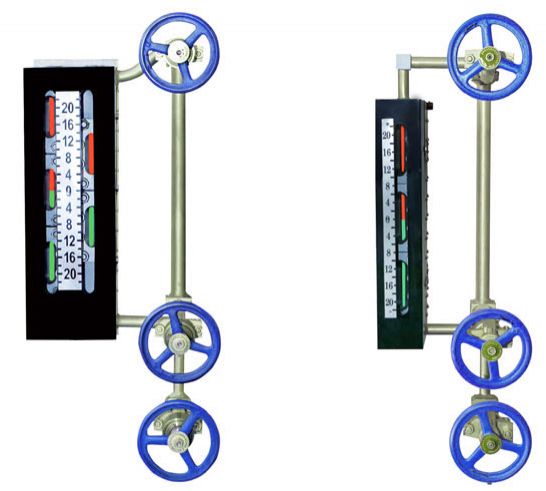 五窗、七窗水位計(jì)是在上述優(yōu)點(diǎn)基礎(chǔ)上,研制出在一塊本體上并列設(shè)置兩排窗口,通過(guò)光學(xué)原理轉(zhuǎn)換達(dá)到在水位計(jì)正前方±3o角范圍觀(guān)看水位計(jì)兩排窗口,可同時(shí)觀(guān)察到兩排窗口紅綠變化且紅綠分明、界面清晰,可在水位計(jì)可視范圍內(nèi)無(wú)盲區(qū)連續(xù)監(jiān)視。